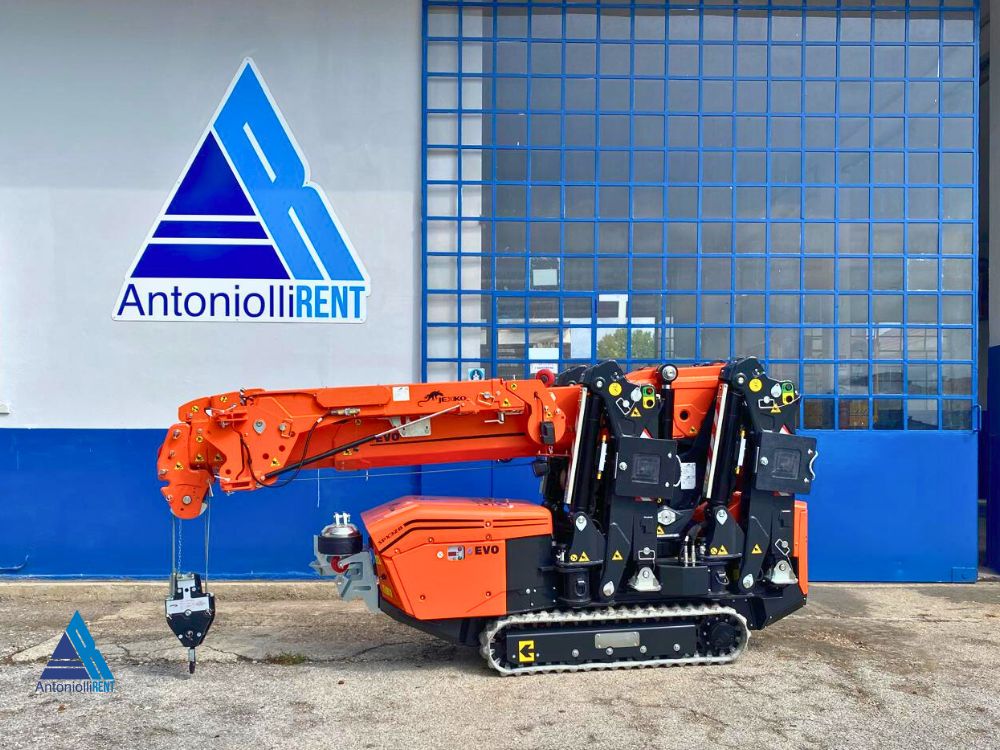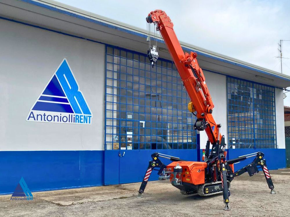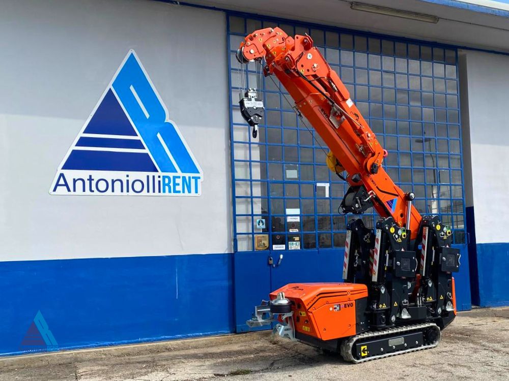 Mini gru alimentata a batterie con stabilizzatori autolivellanti e radiocomando per un facile ed intuitivo utilizzo.